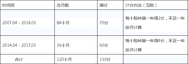1、2007年4月1日—2017年3月31日期间一直在昆缴纳的社保按社保计分方法计分。
